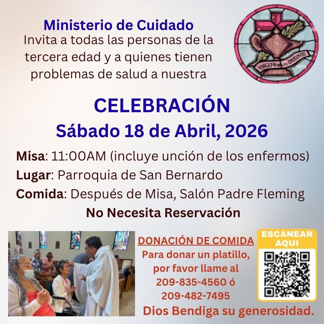 - Senior Celebrations: a special Mass during which the sacrament of the Anointing of the Sick is administered. These celebrations are usually on the Saturday after Easter Sunday. And in October, they begin at 10:30 a.m. and are followed by lunch.
