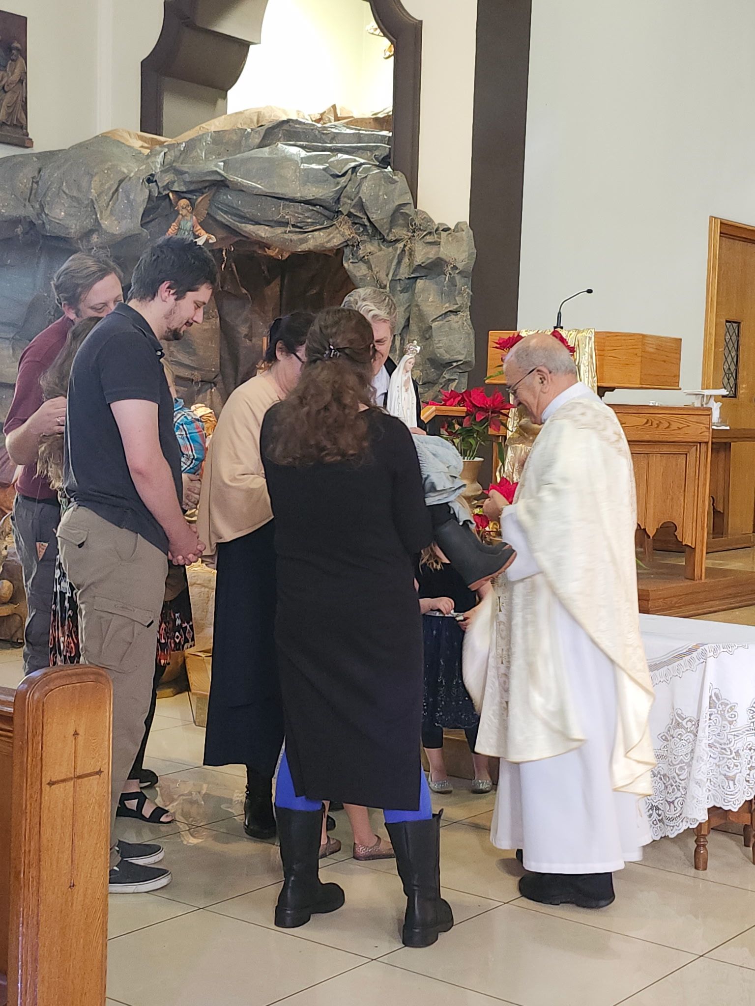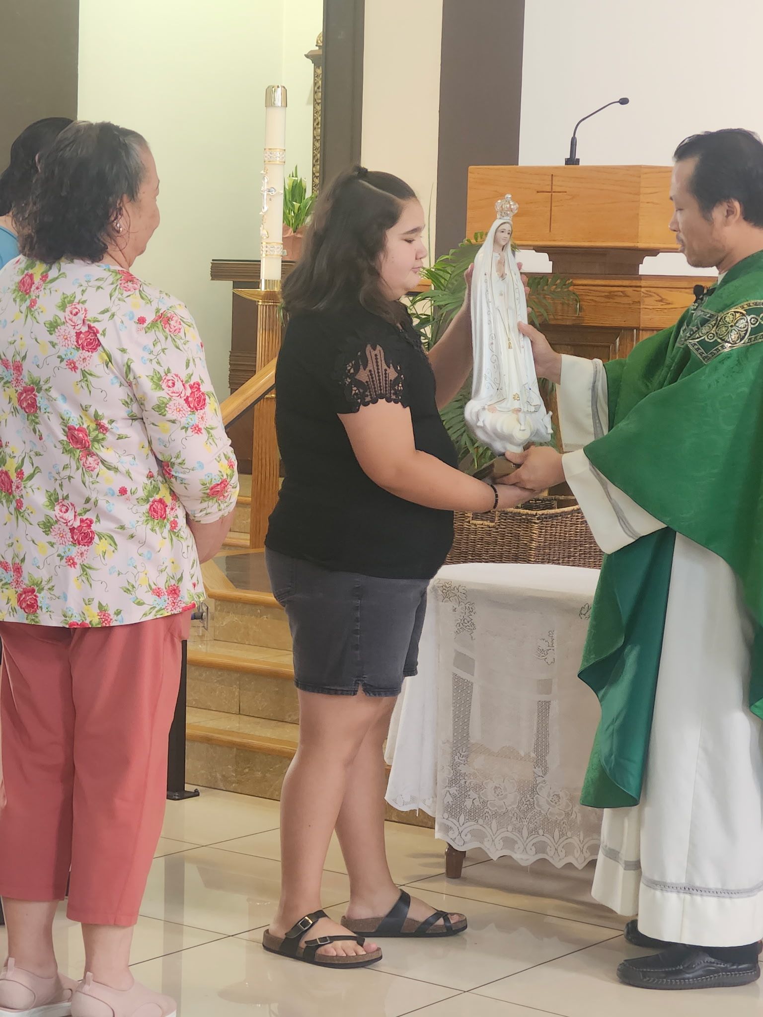 Each week at the 9am Mass a family is invited forward to receive the Our Lady of Fatima Statue to take home and pray the rosary throughout the week. Our Lady is then returned on the following Sunday before the 9am.