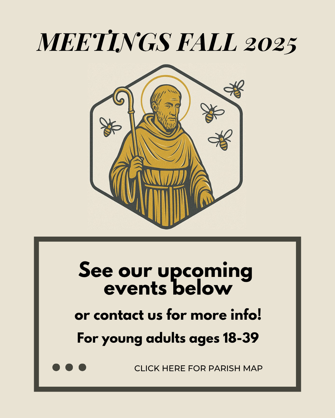 Come for Confessions 4–5 PM and Mass at 5:30 PM, followed by dinner and fellowship!